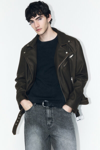 - Мужская куртка-косуха прямого кроя из плотной искусственной кожи с приятной к телу подкладкой - Широкий отложной воротник с лацканами и декоративными заклепками. Длинные свободные рукава с прямыми манжетами на молнии. Широкий ремень с прямоугольной пряжкой и металлическими люверсами снизу. Застежка на косую молнию по всей длине. Два боковых прорезных кармана на молнии и нагрудный прорезной карман на молнии - Базовая косуха из новой весенней коллекции. Снова в тренде: косуха с вареным эффектом для дерзких аутфитов в байкерском стиле или для повседневных луков. Косуха в стиле гранж защитит тебя от ветра и дождя и подойдет на раннюю осень и позднюю весну. Создавай тотал-кожаные образы или сочетай куртку с любимым низом. Заверши образ удобной обувью и стильными аксессуарами из новой коллекции Befree - Размер на модели: L