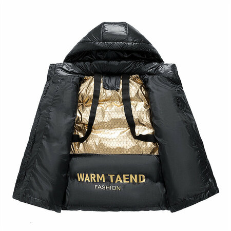 Зимняя мужская куртка с подкладкой из черного золота: стиль и комфорт Зимняя мужская куртка с подкладкой из черного золота – это сочетание стиля и комфорта. Черный цвет и свободный силуэт делают эту куртку стильной и удобной для повседневной носки. Утеплитель из хлопка обеспечивает тепло и комфорт в холодную погоду. Куртка оснащена капюшоном, который защитит вас от ветра и снега. Подкладка из графена делает куртку утолщенной и холодостойкой, обеспечивая надежную защиту от холода. Принт в виде печати добавляет куртке индивидуальности и делает ее более привлекательной. Выбирая зимнюю мужскую куртку с подкладкой из черного золота, вы получаете стильный, теплый и комфортный вариант верхней одежды на холодное время года.