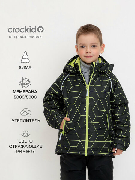 Модная зимняя куртка для мальчика Crockid - идеальный выбор для вашего ребенка в холодную погоду. Она не только стильная, но и функциональная. Куртка детская изготовлена из высококачественных материалов, поэтому обеспечивает высокий уровень комфорта, защищает от ветра, снега и легкого дождя. Верхняя мембранная ткань 5000/5000 (Водостойкость/ Воздухопроницаемость) с дополнительной тефлоновой обработкой и современный утеплитель Слайтекс Найс, 250 г/м2 - отличный выбор для активных занятий на свежем воздухе. Мембрана обладает "дышащими" свойствами и гарантирует идеальный воздухообмен. Подклад из полиэстера Tricot. Рекомендованный температурный режим изделия - от 0 до -25 °C, он носит рекомендательный характер и зависит от индивидуальных особенностей ребёнка. Детская куртка оснащена воротником стойкой и несъемным капюшоном, чтобы защитить шею ребенка от холода. Молния с защитой подбородка позволяет быстро и легко надевать и снимать изделие. Ветрозащитная планка защищает от попадания холодного воздуха. Зимняя куртка имеет светоотражающие элементы, что делает вашего ребенка более заметным в темное время суток и обеспечивает его безопасность. Два кармана на молнии позволяют хранить необходимые мелочи. Низ рукавов регулируется с помощью липучки для лучшего прилегания к рукам ребенка и предотвращения попадания ветра и холода. Внутренняя утяжка по низу обеспечивает идеальную посадку по фигуре. Зимняя одежда для мальчиков легко стирается и быстро сохнет, что делает ее уход более простым. Зимняя одежда для детей Крокид - отличный выбор для повседневной носки. Она комфортна и удобна, идеально подойдет для школы, детского сада, прогулок с друзьями и других ежедневных мероприятий. Это отличный выбор для тех, кто ищет функциональную и модную верхнюю одежду для мальчиков. Она обеспечит защиту и комфорт в любую погоду, а также подчеркнет стиль и индивидуальность вашего ребенка.