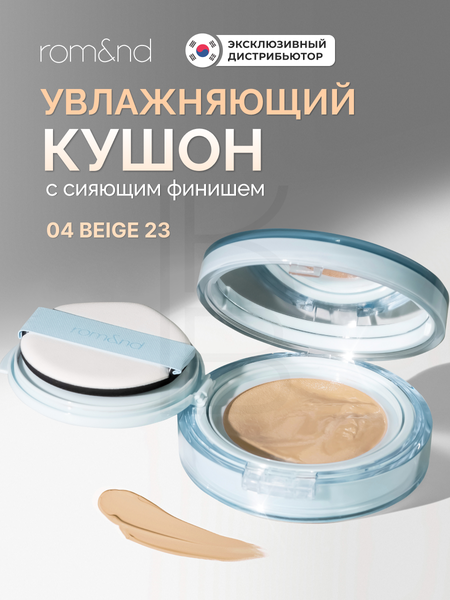 Тональный крем в удобной компактной упаковке! Корейский тональный кушон для 23 оттенка кожи от ROM&ND Bare Water с влажным финишем в бежевом теплом оттенке с натуральным подтном, деликатно выравнивает тон кожи без ощущения маски и придаёт ей сияние. Солнцезащитный тональный кушон имеет легкую степень покрытия, деликатно выравнивает тон кожи. В использовании может заменить bb крем и cc крем. Средство содержит уходовые компоненты и дополнительно защищает кожу от ультрафиолета (SPF38 PA++++) и обезвоживания, придавая коже сияющий финиш. Основные компоненты: