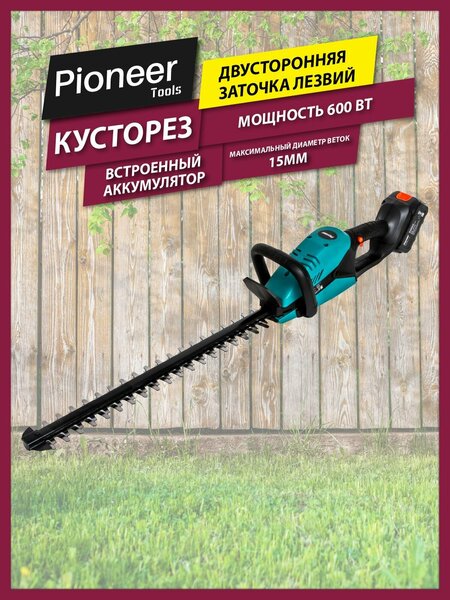 Кусторез аккумуляторный Pioneer BHT-20V30-01 незаменимый инструмент для ухода за садом, с литиевой батареей 21 В * 3 Ач позволяет работать без проводов, обеспечивая свободу и мобильность, обеспечивает превосходную производительность и мощность, идеально подходит для поддержания живых изгородей и кустарников. Мощность 600 Вт гарантирует эффективную и быструю резку до максимальной длины 510 мм, позволяя стричь большие площади за меньшее время. Максимальный диаметр веток 15 мм позволяет без труда обрабатывать даже самые толстые ветки. Этот кусторез является отличным выбором для тех, кто ищет мощный и надежный инструмент для своего сада. Беспроводной кусторез идеально подходит для широкого спектра задач по уходу за садом, включая: Стрижка живых изгородей Формирование кустарников Обрезка веток Удаление поросли КЛЮЧЕВЫЕ ХАРАКТЕРИСТИКИ: Класс: бытовой Тип прибора: кусторез аккумуляторный Тип аккумулятора: Li-ion Напряжение: 21 В Ёмкость аккумулятора: 3 Ач Универсальная аккумуляторная система 20В совместима со многими инструментами других брендов ОСОБЕННОСТИ и ПРЕИМУЩЕСТВА: Время заряда - 4 ч Время работы - 1 ч Число ходов в минуту - 1500 Двусторонняя заточка лезвия, 45° Общая длина лезвия - 510 мм Максимальная толщина реза - 15 мм Благодаря своей мощности, эффективности и удобству аккумуляторный кусторез Pioneer станет вашим надежным помощником в поддержании вашего сада в идеальном состоянии.