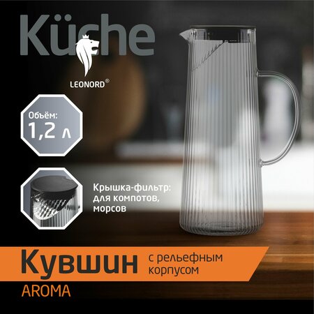 Кувшин AROMA объемом 1,2 литра представляет собой стильный и функциональный аксессуар для вашего дома. Изготовленный из цветного боросиликатного рельефного стекла, он станет ярким акцентом на вашем столе и подчеркнет ваш вкус. Особенностью кувшина является наличие крышки-фильтра из полипропилена, которая обеспечивает защиту от пыли и насекомых. Кувшин AROMA подходит для воды, сока, компотов и морса, что делает его незаменимым помощником на кухне и в гостиной. Упаковка кувшина выполнена в виде цветной коробки, что делает его отличным вариантом для подарка. В целом, кувшин AROMA станет отличным дополнением к вашему дому и привнесет в него нотку изысканности и стиля.