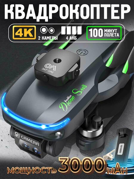 Квадрокоптер S118 4К - модель 2024 года! Стильный дизайн в котором идеально все - подойдет как для новичка, желающего освоить искусство полета. Отличная стабилизация в полете и зависание в воздухе (Он обладает всеми необходимыми характеристиками для подготовки к профессиональным полетам), позволит легко освоить управление как взрослому так и ребенку 14+ лет. Бесщеточные моторчики позволяют в 10 раз увеличить срок эксплуатации дрона, а увеличенная мощность АКБ в 3000mAh, позволяет дольше держать дрон в полете на расстоянии до 200 метров - в зависимости от местности запуска и силы радио сигнала. Камера с разрешением 4K (3840x2160 пикселей). Шестиосевой гироскоп Изготовлен из высокопрочного пластика. Легкий и одновременно прочный кейс красивой LED подсветкой. Функция удержания высоты. Планирование маршрута полета. Кульбиды (переворот в воздухе) на 360 градусов. В комплект входит сам дрон, аккумуляторы оригинальные мощностью - 3000mAh - 4шт, пульт управления. Запасные лопасти 4 пары. Батарейки типа АА для пульта управления - 3 ед. Зарядные кабель с инструкцией, отвертка, два болтика для лопастей и шуруп. Дрон упакован в прочный кейс для хранения, а также в коробку для сохранности при транспортировке! Все возможности дрона смотрите на фотографиях карточки товара!