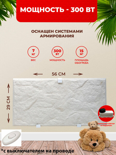 Кварцевый обогреватель 300 Вт предназначен для отопления квартир, дач, гаражей, киосков, магазинов, складов, промышленных и сельскохозяйственных объектов, балконов, используется в парниках. Может быть использован постоянно, без отключения от сети. Сконструирован с защитой от перегрева и перегорания. Для круглогодичного использования. Мощность - 300 Вт. Пожаробезопасен. Экологически чист. Без запаха. Гарантия - 5 лет. Срок Службы - 25 лет. Низкое электропотребление. Экономный. Диапазон рабочих напряжений: 190-230В. Объём отапливаемого воздуха - 12-30 куб. м. Как основное отопление - до 5 кв. м. (при высоте 2,6 м). Как дополнительное отопление - до 15 кв. м. Время нагрева -10-15 минут. Цвет - белый. ВНИМАНИЕ! Необходимо внимательно прочитать инструкцию перед использованием во избежание неправильной подготовки к постоянной эксплуатации; Во время первого включения не дотрагиваться до обогревателя несколько часов, до полного осушения от производственной влаги! В комплект входит: Кварцевый обогреватель с выключателем на проводе + паспорт изделия - 1 шт. Отражающий теплоэкран - 1 шт. (экономит до 10% электроэнергии). Комплект креплений к стене - 1 шт. Напольная подставка - 1 шт. Терморегулятор - 1 шт. Термометр в подарок.