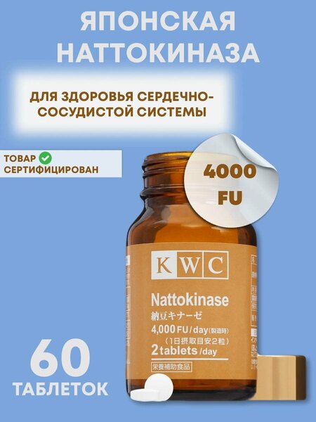 KWC Наттокиназа 4000FU - для поддержки сердечно-сосудистой системы, 60 таблеток