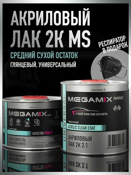 Двухкомпонентный акриловый лак MEGAMIX с средним сухим остатком (MS) обладает отличным розливом по поверхности, повышенной стойкостью к появлению царапин и воздействию внешних условий благодаря использованию смол с высокой толщиной пленки. Лак 100% прозрачен, обладает высоким уровнем блеска и не выгорает на солнце. Автомобильный лак предназначен для точечной, детальной или полной окраски металлических и пластиковых деталей в качестве финишного покрытия, применяется в комплексе с базовой эмалью. Обеспечивает долговечное, прочное глянцевое покрытие, хорошо полируется. Смешивание продукта: · Добавить отвердитель для акрилового лака MEGAMIX в соотношении 2(лак) : 1(отвердитель) по весу. Тщательно перемешать компоненты. · Добавить разбавитель MEGAMIX в количестве до 20% от массы полученной смеси. · Довести до рабочей вязкости от 15 до 19 секунд по вискозиметру В3-246 с диаметром сопла 4мм при 20℃. · Отфильтровать. · Жизнеспособность смеси при 20°C – 3 часа. Подготовка поверхности: · Обезжирить поверхность уайт-спиритом. · Отремонтировать поверхность с использованием шпатлевки (при необходимости). · Загрунтовать поверхность акриловым 2К грунтом MEGAMIX. · Нанести базовую эмаль MEGAMIX. Нанесение лака акрилового автомобильного: · Количество слоев: 1.5 – 2 · Расход: 40 – 60 г/м2 Сушка покрытия: · Выдержка между слоями и перед сушкой – 10 минут при температуре 20℃ · Монтажная прочность при 20℃ – 24 часа · Монтажная прочность при 60℃ – 30 минут · Полная полимеризация – 5 дней