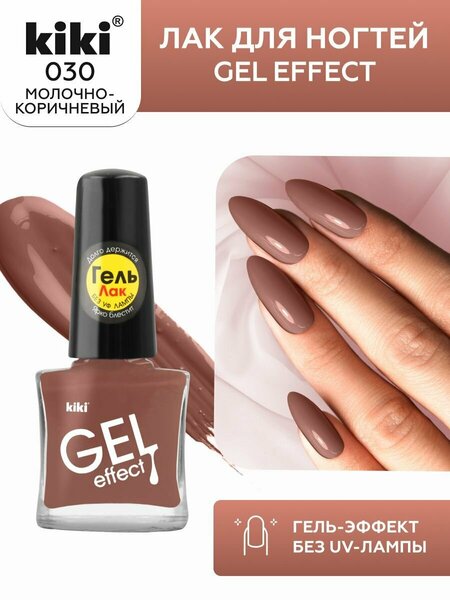 Лак для ногтей kiki Gel Effect тон 30 молочно-коричневый, с гелевым эффектом без уф-лампы, цветной глянцевый маникюр и педикюр, 6 мл