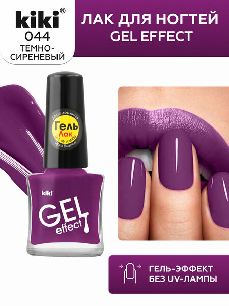 Лак для ногтей kiki Gel Effect тон 44 темно-сиреневый с эффектом геля без уф-лампы, глянцевый маникюр, педикюр, 6мл