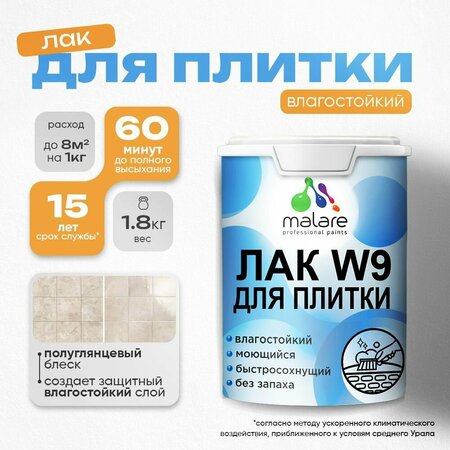 Лак для защиты плитки и кафеля Malare акриловый влагостойкий моющийся быстросохнущий, полуглянцевый, 1,8 кг