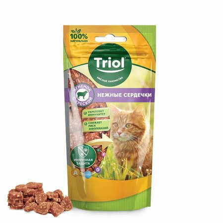 Лакомства для кошек Triol «Нежные сердечки из ягненка с треской», 40г