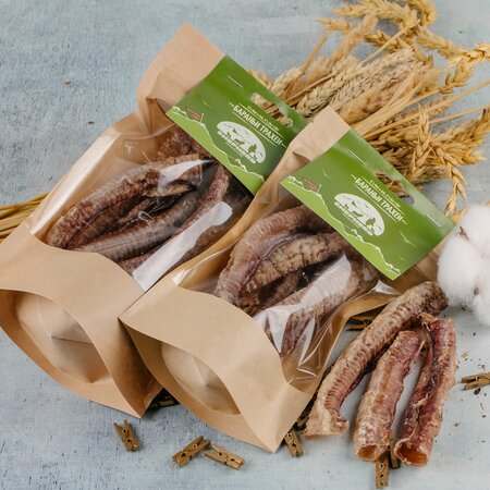 "Бараньи трубочки" - это 100% натуральное лакомство для собак, которое станет отличным выбором для вашего питомца. Лакомство представляет собой хрустящие на зубах трубочки, изготовленные из сушеных трахеи барана. Они богаты хрящевой и соединительной тканью, что обеспечивает не только приятную текстуру для жевания, но и обогащает рацион собаки различными полезными веществами. Одним из основных преимуществ сушеных трахей является их высокое содержание белка, фосфора, железа и цинка. Эти элементы важны для обеспечения здоровья и правильного функционирования организма собаки. Белок является строительным блоком для мышц и тканей, а фосфор, железо и цинк играют ключевые роли в поддержании здоровья костей, крови и общего иммунитета. Сушенные бараньи трахеи особенно рекомендуются для щенков, подростков и собак с проблемами опорно-двигательного аппарата. "Бараньи трубочки" упакованы в дой-пак, что обеспечивает удобство хранения и использования. Общий вес составляет 109 грамм, что позволяет удовлетворить жевательные потребности вашего питомца на длительное время. Лакомство предназначено для чистки зубов и укрепления десен собаки. Благодаря приятной текстуре, собаки могут долго и с удовольствием жевать, что способствует укреплению зубной эмали и предотвращает зубной налет. "Бараньи трубочки" не содержат ГМО, ароматизаторов, вкусовых добавок, глютена и являются 100% натуральными. Лакомство рекомендуется давать в количестве 10% от суточной пайки питомца. При температуре от +4`С до +25`С оно сохраняет свои полезные свойства и вкусовые качества. Выбирая "Бараньи трубочки", вы обеспечиваете своему питомцу вкусное и полезное лакомство, которое принесет ему не только удовольствие, но и пользу для здоровья.
