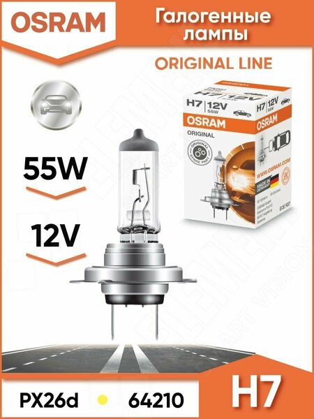 Лампа автомобильная галогенная Osram Original Line 64210 H7 – надежное и экономичное решение для большинства легковых, грузовых автомобилей, мотоциклов, мопедов и внедорожников. Яркий и стабильный свет теплого белого цвета с цветовой температурой 3200К обеспечивает хорошую видимость на дороге в любых условиях. Лампа имеет типоразмер H7 и цоколь PX26d. Мощность составляет 55 Вт, а напряжение – 12 В. Световой поток достигает 1500 лм, а срок службы – около 550 часов. Лампа Original Line от Osram прошла проверку качества на миллионах автомобилей и показала высокую надежность и долговечность. Это идеальное решение для тех, кто ценит качество и экономичность. Тип автотехники: легковые автомобили, мотоциклы, коммерческий транспорт. Цоколь: PX26d, H7, P26XD, IEC: 7004-5-1. Цвет света: желтый. Внимание: производителем не предусмотрено наличие защитного колпачка.
