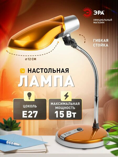 Светильник предназначен для использования с компактной люминесцентной лампой (КЛЛ), которая обеспечивает экономию электроэнергии до 70%. Максимальная мощность лампы мощность 15W, максимальный диаметр 42 мм, цоколь E27. Устойчивое металлическое основание. Выключатель на основании светильника. Современный дизайн, яркие цвета. Лампа в комплект не входит. Направление света регулируется несколькими способами для максимального комфорта: гибкая стойка наклоняется в любую сторону; регулируется наклон плафона, его положение фиксируется с помощью винта; направления света регулируется вращением плафона вокруг основания с цоколем.