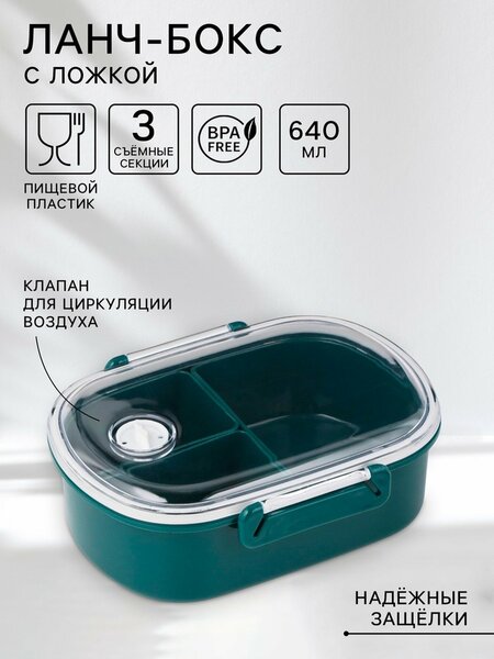 Ланч бокс в школу, контейнер для еды "Эйлайт", 640 мл, с приборами, 18.5 х 14 х 6.3 см, синий