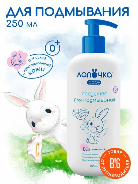 Средство для подмывания Лапочка, без сульфатов, без спирта, без парабенов