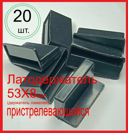 Латодержатель пристреливающийся для ламелей шириной 50-53 мм и толщиной 8 мм. Латодержатель предназначен для крепления ламели к деревянному или металлическому основанию кровати. Предотвращает скрипы при трении ламели с основание кровати. Обладает дополнительным амортизирующим эффектом. Незаменим для крепления ламели к деревянному каркасу основания. Изготовлен латодержадель из первичного сырья, благодаря чему не имеет запаха, пластик мягкий способен выдержать большое количество изгибов и прослужит долгое время. Крепится латодержатель скобой при помощи степлера, либо гвоздями или саморезом.