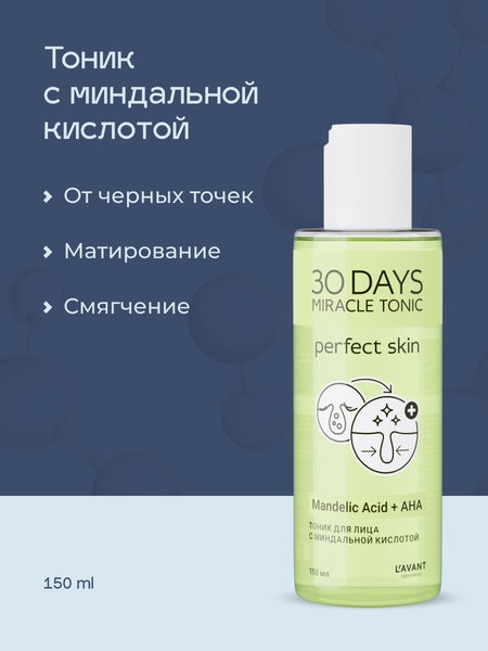 Очищающий тоник для лица Lavant предназначен для сужения пор, устранения жирного блеска и угревой сыпи. Средство способствует глубокому очищению, оказывает себорегулирующий и матирующий эффект, применяется для выравнивания рельефа, устранения черных точек и покраснений. Подходит для проблемной и жирной кожи. Кислотный тоник для лица содержит в составе 3 вида кислоты: Молочная кислота устраняет следы от акне, осветляет веснушки и пигментные пятна. Гиалуроновая кислота улучшает структуру кожи, сокращает мелкие морщины, делает кожу гладкой и нежной, способствует задержанию влаги в коже и предотвращает ее пересыхание. Миндальная кислота увлажняет и деликатно отшелушивает верхний слой эпидермиса. Тоник для проблемной кожи Лавант является несмываемым средством. Он нормализует работу сальных желез, устраняет жирный блеск и покраснения, избавляет от черных точек, делает кожу эластичной.