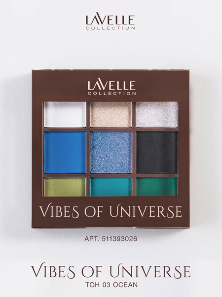 Серия Vibes of Universe - это 9 красивых, модных оттенков теней в каждой палетке, вдохновленных Вашей красотой и природой! Доступная по стоимости модная палетка содержит высоко пигментированные тени c различным финишем и назначением: базовые (матовые, шиммерные) и акцентные (глитеры, дуохромы). Все оттенки прекрасно набираются кистями, либо пальчиками и переносятся на веки. Мягко растушевываются c плавными переходами, помогая воплощать Ваши идеи. Создавайте свои неповторимые, характерные образы с палетками теней «Vibes of Universe».