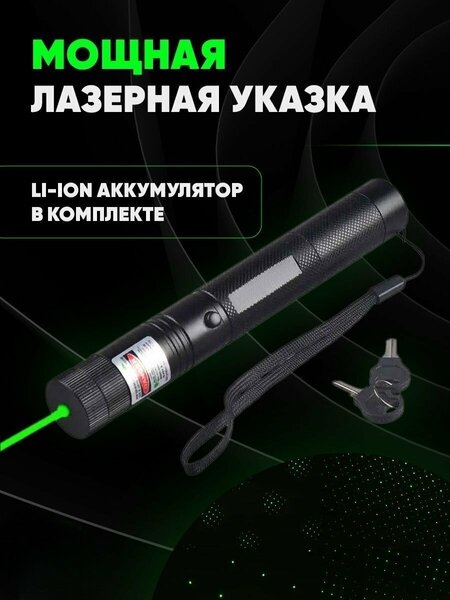 Лазерная указка, перезаряжаемый лазерный указатель Огонь Laser 303, зеленый луч, лазер. Особенности товара: Изготовлено из алюминиевого сплава. Износостойкий и нескользящий. Мощный зеленый лазерный луч. Дальность может достигать 2000 метров. Вращающаяся головка. Имеется головка "звездного неба "Батарея 1*18650. Имеется хвостовой замок для защиты от детей. Зеленая лазерная указка Огонь Laser 303 имеет очень большую мощность. Кроме того, он хорошо виден в темное время суток и бьет на очень большое расстояние. Устройство оснащено плавающей линзой, которая позволит сфокусировать энергию выходящего потока в одну точку. Зелёный лазерный луч отлично и особенно эффектно виден в сумерки, ночью и/или дымке (тумане). Лазерная указка по мощности превосходит более слабые указки, помогающие указывать на предмет, поскольку только лазерная указка может быть использована на расстоянии несколько сот метров, производя яркое пятно света, очень хорошо заметное человеческому глазу. Вы можете указывать прямо на звезды. Даже в дневное время точка от луча видна на больших расстояниях. В комплект поставки входит съемная аккумуляторная батарея типа 18650, устройство для ее зарядки от сети 220 В, насадка звездное небо, а также ключ для блокировки специального поворотного механизма, позволяющего дезактивировать прибор с целью защиты от детей. Особенностью данной указки несомненно является то, что в комплекте также идёт специальная насадка для создания рассеивающего эффекта "звёздного неба" с разными режимами - тем самым, площадь свечения увеличивается на несколько десятков квадратных метров. Внимание: правильно проинформируйте о мерах безопасности детей, перед тем, как давать инструмент им в руки! Внимание: будьте аккуратны в использовании любой лазерной указки! Не направляйте луч в глаза, это может быть опасно для здоровья!