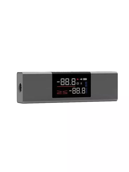 Лазерный инклинометр Duka Atuman Laser Angle Meter LI1 с подставкой Корпус лазерного уровня ащищен от пыли и влаги по стандарту IP54. Он выполнен из алюминиевого сплава с матовым покрытием, поэтому устойчив к механическим воздействиям. Светодиодный экран с высоким уровнем четкости и яркости располагается на двух торцах устройства. Его поверхность прикрыта закаленным стеклом твердостью 9Н, что предотвращает вероятность появления царапин и трещин. Для замеров используется технология перекрестной лазерной проекции с толщиной линии всего 1 мм. Благодаря высокой проникающей способности лазерная линия сохраняет четкость на любом расстоянии. Особенности лазерного уровня: Точность измерений в горизонтальной и вертикальной плоскости составляет ± 1 мм / 5 м, диапазон измерений достигает 10 метров. Доступны режимы работы с абсолютным и относительным углом. Диапазон самонивелирования составляет ± 4 °. О более высоком угле наклона сообщает индикатор красного цвета. В Duka Atuman Laser Angle Meter LI 1 установлен встроенный аккумулятор емкостью 730 мАч, который заряжается через кабель USB. Наличие на корпусе резьбового соединения 1/4" позволяет зафиксировать устройство на поворотном кронштейне, который поставляется в комплекте. Широкое основание обеспечивает устойчивость подставки на поверхности.