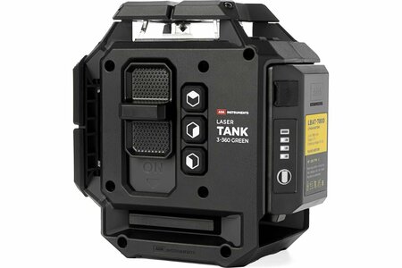 ADA LaserTANK 3-360 GREEN Basic Edition –профессиональный лазерный уровень ADA Instruments проецирующий три линии 360°. Взаимно перпендикулярные линии (одна горизонтальная и две вертикальные) позволяют выполнить абсолютно любую разметку. Идеально подходит при проведении строительных или ремонтных работ снаружи и внутри помещений. Сверхпрочный, защищенный корпус. Корпус ADA LaserTANK 3-360 GREEN со всех сторон имеет протекторную защиту из толстого слоя резины. Внутри использована ячеистая структура, которая отлично противостоит внешним воздействиям, ударам при падениях. Оригинальная конструкция ограждения стекол максимально защищает их от разрушения. Яркие зеленые лучи. Зеленый луч профессионального лазерного уровня ADA LaserTANK 3-360 GREEN отлично подходит для разметки при ярком свете. Зеленую лазерную линию отлично видно по сравнению с красной при равных условиях освещенности. Удобные кнопки управления. Кнопки управления режимами работы лазерного уровня ADA LaserTANK 3-360 GREEN выполнены эргономично и интуитивно понятны. Благодаря этому управлять прибором удобно. Удобная разметка вертикальными линиями. При включении вертикальных линий получается перекрещивающиеся лазерные лучи под углом 90º. Очень удобно при выравнивании стен и углов между стенами. Лазерные линии можно поочередно отключать, оставляя только необходимые для работы. Точное выравнивание. Выравнивание уровня автоматическое. ADA LaserTANK 3-360 GREEN отличается высокой точностью – погрешность составляет всего ± 0,3 миллиметра на метр. Мощный литиевый аккумулятор. ADA LaserTANK 3-360 GREEN работает от съемного литиевого аккумулятора емкостью 7800 мAч. Большая емкость аккумулятора значительно увеличивает время непрерывной работы по сравнению с обычными лазерными уровнями. Разъем для зарядки аккумулятора - USB Type-C. Дистанционное управление. Включение и выключение лазерных лучей производится не только с помощью кнопок на корпусе уровня, но и пультом дистанционного управления. Сбой настроенных для разметки линий исключен. Для экономии заряда аккумулятора общей кнопкой на пульте можно отключить и включить работающие линии. Память прибора сохраняет выбранную комбинацию. При включении без пульта используется эргономичная кнопка фиксатора оригинальной конструкции для легкой разблокировки при работе в перчатках. Две точки крепления. ADA LaserTANK 3-360 GREEN можно крепить к штативу или настенному креплению при помощи резьбового соединения 1/4 дюйма. Одна резьба расположена сверху, вторая — снизу. Прибор можно установить на штативе или на универсальном креплении. Работа под наклоном. В этом режиме можно наклонять прибор на любой угол. Достаточно зафиксировать маятник и нажать кнопку включения режима. При этом будут проецироваться лазерные лучи с необходимым наклоном. Такая функция понадобится, например, при установке перил лестницы, или разметки натяжных потолков под наклоном, например в мансарде. Режим работы с приемником. Для работы при ярком освещении, на улице, есть режим работы с приемником. При включении этого режима дистанция разметки увеличивается с 40 метров до 70. Ударопрочный пластиковый кейс. Кейс изготовлен из высокопрочного, эластичного материала. Кейс усилен ребрами жесткости и легко выдерживает удары, падения и значительные весовые нагрузки. Кейс герметичен. Крупные замки-клипсы удобны в использовании. Внутри кейса ла