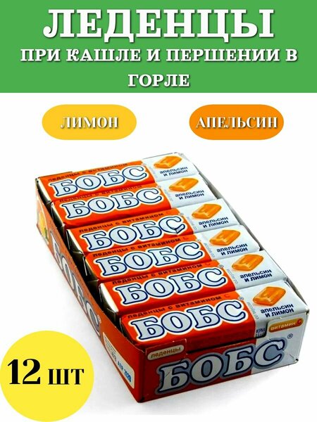 Леденцы бобс апельсин-лимон, 12 шт по 35 гр от кашля и першения в горле