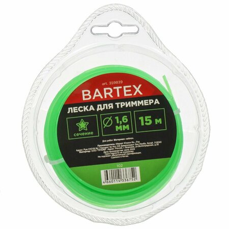 Леска для триммера Bartex 1.6 мм 15 м зеленая, сечение звезда