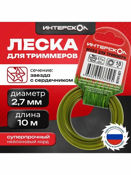 Представляем вашему вниманию леску для триммеров Интерскол Звезда с сердечником. Созданная с учетом всех потребностей садоводов, эта леска диаметром 2,7 мм и длиной 10 метров станет отличным помощником в уходе за вашим садом.