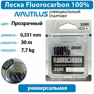 Леска Nautilus Fluorocarbon 100% - это высококачественная флюорокарбоновая леска, которая станет незаменимым помощником для любого рыболова. Флюорокарбон 100% - это качественный, универсальный материал, который обладает рядом преимуществ. Он не только преломляет солнечные лучи, но и максимально не заметен в воде, что делает его отличным выбором для использования в качестве поводков, шок лидеров и других элементов оснастки. Леска обладает высокой абразивоустойчивостью и минимальной растяжимостью, что обеспечивает надежность и долговечность. Диаметр лески составляет 0,331 мм, что позволяет использовать ее для ловли различных видов рыб. Леска Nautilus Fluorocarbon 100% бесцветная, что делает ее незаметной в воде и позволяет использовать в любых условиях. Леска имеет разрывную нагрузку 7,7 кг, что гарантирует надежность и безопасность при использовании. Длина лески составляет 30 метров, что позволяет использовать ее на больших расстояниях и в разных условиях. В комплекте идет одна леска, что позволяет выбрать именно тот размер, который необходим для ваших целей. Леска Nautilus Fluorocarbon 100% подходит для использования в летний сезон, что делает ее отличным выбором для рыбалки в теплое время года. Выбирая леску Nautilus Fluorocarbon 100%, вы получаете качественный, надежный и удобный в использовании продукт, который станет незаменимым помощником на рыбалке.