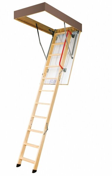 Размер 58x118x280, размер проема 60x120 Комплектация и параметры Лестниц LWS и LWK полностью соответствуют моделям LWS Plus и LWK Plus. Отличием в моделях является способ крепления лестничного марша и цвет поручня. Лестничный марш крепится к крышке люка стальными петлями-шарнирами, такая конструкция гарантирует устойчивость конструкции лестницы Петли-шарниры дают возможность регулировать положение лестничного марша относительно крышки люка при подрезке нижнего сегмента (в пределах 40мм). Для транспортировки лестница снижается в пазах, перед использованием необходимо отодвинуть лестничный марш от плиты люка Поручень черного цвета и наконечники на ножки входят в комплект! Деревянная чердачная лестница LWK изготовлена из сосны высшего качества и укомплектована утепленной крышкой, облицованной ДВП белого цвета. Оборудована удобным боковым металлическим поручнем. Монтаж лестницы возможен со стороны помещения. Лестница устанавливается быстро и просто благодаря пластиковым креплениям-защелкам на крышке люка. Для большего удобства крышка люка на время монтажа лестницы снимается. Увеличенное расстояние между ступенями и крышкой люка повышает безопасность и комфорт использования. Преимущества складных и раздвижных конструкций для дома компании FAKRO