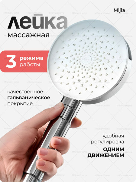Модель: MJZYSCHS01DB Xiaomi Mijia Booster Hand Shower (MJZYSCHS01DB) Удобная конструкция душа обладает запатентованным рычагом управления, которым можно управлять спереди и сзади. Технология увеличения давления позволяет использовать душ в условиях низкого давления воды. Удобная регулировка Переключать режимы работы душа можно одной рукой буквально кончиками пальцев. По данным испытаний переключатель выдерживает больше 10000 циклов переключения. Режимы В душе используется технология физического нагнетания давления, поэтому даже в условиях низкого давления струя воды остаётся достаточно сильной. Лейка для душа имеет 3 режима использования. Массажный поможет расслабиться после долгого дня, душ-спрей освежит после пробежки, смешанный тропический душ отлично подойдет для пробуждения утром. Тихая подача воды Специалисты Mijia смогли усовершенствовать технологию подачи воды и уменьшить общий уровень шума. Материалы Качественное гальваническое покрытие душа - это отличный внешний вид и эффективная защита от коррозии. Выходные отверстия изготовлены из пластичного силиконового материала, который создает защиту от засорения. Поток воды всегда остается мощным и сильным.
