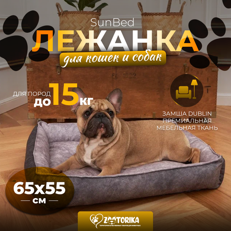 Лежанка для кошек и собак SunBed прямоугольная с бортиками из мебельной ткани, серый/свет. серый меланж, 65х55 см. Прямоугольная лежанка для собак и кошек – отличное решение для отведения отдельного спального места питомцев. Оснащенная невысокими бортиками, она защищает животных от случайных падений во сне, а также бортики служат своеобразным подголовником. Уже многим животным и их хозяевам нравятся подстилки магазина ZOOTORIKA на Озоне. Большой выбор формы, размеров, цвета – каждый найдет для себя то, что нужно. Лежак предназначен для собак мелких пород, для щенков, а также подходит для любых кошек. Прямоугольная форма удобна тем, что легко встраивается вдоль любой свободной стены или в углу помещения, а так же можно разместить на подоконнике у окна. Удобен в использовании: во время поездок лежанку можно взять с собой. Тогда животные будут чувствовать себя уверенней и смогут отдохнуть, когда им захочется. Ведь это их полноценное личное место. Качественная лежанка по низкой цене Качество лежака для небольших животных на высоком уровне. Лежак сделан из мебельной ткани, который надолго остается в состоянии нового, легко чистится и стирается при невысоких температурах в машинке-автомат или с помощью ручной стирки. Внутренний наполнитель – холлофайбер – очень теплый, мягкий и податливый, что нравится питомцу. Купить лежанку для животных легко. Достаточно выбрать нужный зоотовар в корзину и следовать дальнейшим инструкциям. Продавцом предусмотрены приятные скидки и бонусы. У магазина широкий ассортимент товаров и аксессуаров для домашних животных, которые им точно понравятся. ZOOTORIKA — Территория комфортных товаров для животных! Бренд для тех, кто обожает своих четвероногих питомцев, и стремится наполнить их жизнь любовью, заботой и максимальным комфортом. Под нашим брендом ZOOTORIKA (зооторика) выпускается разнообразные текстильные товары для питомцев — удобные лежанки, матрасы, подушки для сна, домики и другие вещи. Если вы ищите для своего любимца самое комфортное, удобное и эстетичное, то вам точно нужны товары от нашей марки!