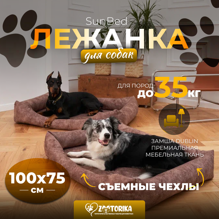 Лежанка для собак SunBed со съемным чехлом из замши, коричневый меланж, 100х75 / Лежак Премиум XL для животных средних и больших пород, матрас анатомический