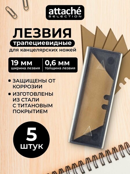 Лезвия сменные для канцелярских ножей Attache Selection SX11R-5, 19 мм, трапециевидные, 5 штук в упаковке