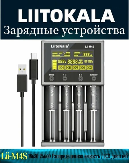 Зарядное устройство LiitoKala Lii-M4S, для 18650/26650/14500/AA/AAA, 4 слота