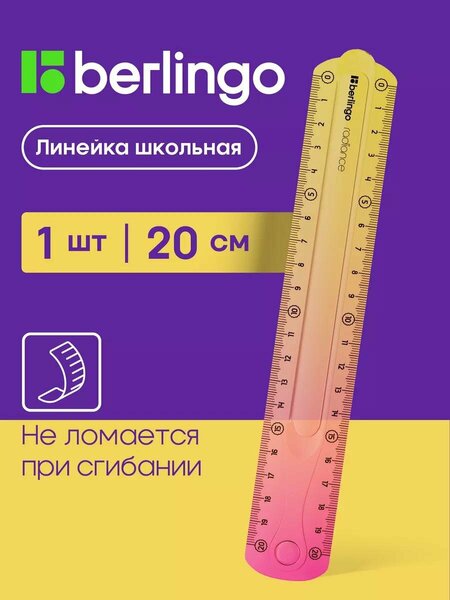 Пластиковая школьная линейка 20 см Radiance удобна для учеников начальных и старших классов, студентов, а также для работников офисов. Гибкую и ударопрочную линейку с градиентным дизайном и двумя шкалами можно использовать на школьных уроках и университетах, для черчения и замеров, построения прямых линий и оформления разметки на бумаге. Канцелярия Berlingo — это письменные принадлежности для учебы и бизнеса. Продукция бренда станет идеальным подарком для ребенка и взрослого. Выбирайте канцтовары Берлинго и получайте удовольствие от эксплуатации качественных изделий для школы и офиса.