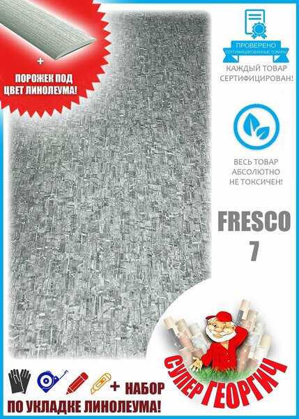Линолеум бытовой серый Фреско-7, 21 класс, толщина 2.5 мм. На войлочной основе(на разрыв идет тяжело). Сфера применения: Бытовой Класс помещения: 21 Толщина: 2.5 мм Толщина защитного слоя: 0.15 мм Тип основы: Войлок Страна производства: россия