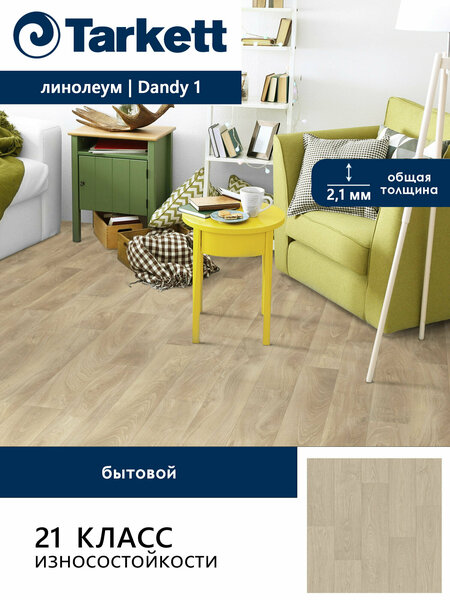 Линолеум бытовой Tarkett Stimul Dandy 1 - это высококачественное напольное покрытие, которое отличается своей износостойкостью и долговечностью. Серый линолеум светлого нейтрального оттенка с имитацией рельефа натуральной доски гармонично смотрится в современных интерьерах стилей минимализм, брутализм, скандинавский, кантри. Прочная дублированная основа обеспечивает безопасность и комфорт. Линолеум Tarkett Stimul Dandy 1 подходит для использования с теплыми полами, максимальная температура которых составляет +27°С. Это позволяет создать комфортный микроклимат в помещении и сэкономить на отоплении. Класс износостойкости линолеума составляет 21/ Пожаробезопасность линолеума подтверждена сертификатом КМ5, что подтверждает его безопасность для использования в жилых помещениях. Структура линолеума гетерогенная, что обеспечивает его прочность и долговечность. Износостойкий линолеум Tarkett Stimul - Dandy 1 отличается от аналогов низкой стоимостью и поможет создать бюджетное и красивое напольное покрытие в любом жилом помещении. Благодаря дублированной основе, он может длительное время эксплуатироваться в условиях ограниченных нагрузок, поэтому обычно настилается в спальнях, детских, залах.