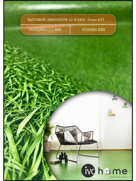 Линолеум идет цельным куском, доставляется в рулоне замотанным в стрейч пленку, пополам НЕ складывается важно! Линолеум отрезается от рулона по размерам покупателя, поэтому товар надлежащего качества возврату не подлежит. Линолеум из коллекции 'Bingo' - качественное и красивое напольное покрытие. Высокая тепло- и звукоизоляция и возможность укладки на 'теплый пол' (при температуре не выше 27°С) обеспечат максимальный уровень комфорта. Предлагаемый вариант декора позволяет применять данную коллекцию в таких помещениях как спальня, детская, гостиная. Хорошая устойчивость к истиранию делает это напольное покрытие идеальным решением для вышеуказанных типов жилых помещений. Линолеум Bingo Grass - великолепное дополнение интерьера в эко-стиле. Цвет сочной зеленой травы и ее точная фактурная имитация создадут яркое ощущение, что вы находитесь на летнем лугу. Такой линолеум поднимает настроение и обеспечивает душевную гармонию. Производитель - IVC Коллекция - Bingo Страна производства - Россия Общая толщина мм – 2,5 Толщина защитного слоя мм – 0,2 Вид поверхности - ПВХ Рисунок – трава Цвет - зеленый Назначение - бытовой Структура поверхности - гомогенная Класс износостойкости - 22 Для теплого пола – да, до 27 градусов Вес кг/м2 – 1,6 кг Сопротивление скольжению – R9 Шумоизоляция – 18 Дб Срок службы – 15 лет Влагостойкость – да Класс пожарной опасности – КМ 5