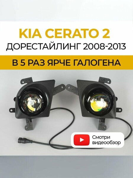 2 противотуманные фары, 2 встроенных провода со штатным разъёмом H11, 2 ответные фишки с разъёмом H11, все необходимые крепления.