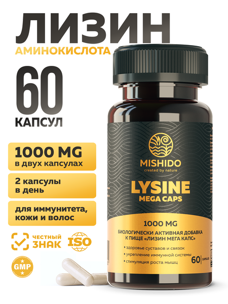 Лизин MISHIDO 60 капсул аминокислота для кожи и иммунитета, L-Lysine