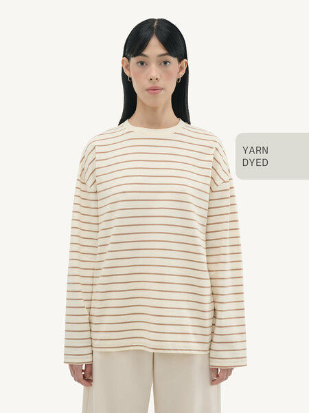 Muted — это бренд базовой одежды, придуманный в Яндексе и созвучный человеку. Женский лонгслив в полоску выполнен из смесового материала — 95% хлопка и 5% спандекса. В результате получается ткань средней плотности, прочная и эластичная. Изделие легко впишется в базовый гардероб: у него оптимальная длина рукава, спущенная линия плеча и расслабленный силуэт Oversize. Лонгслив подходит как для лаконичных, так и для многослойных образов. Эластичная горловина в рубчик не деформируется при растягиваниях, остаётся собранной и аккуратной после стирки. Материал для лонгслива сплетён по технологии Yarn Dyed — из нитей контрастных цветов. Так получается равномерный и насыщенный паттерн в полоску, с точно совпадающим рисунком по боковым швам. Базовый лонгслив сочетается и с юбками, и с брюками — повседневными или акцентными, с нестандартным кроем. Размер на модели: S-M. Параметры модели: рост 174 см, грудь 82 см, талия 62 см, бёдра 94 см.