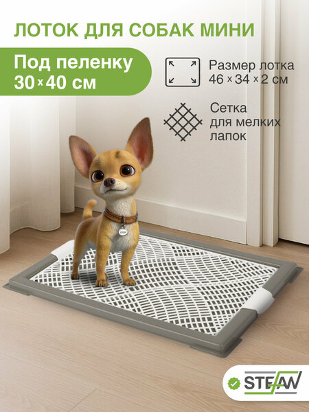 Туалет STEFAN с сеткой под одноразовую или многоразовую пеленку(размер XS, 46х34х2см) для щенков и собак мелких пород имеет достаточно простую конструкцию: прочная сетка и лоток. Главное преимущество туалетов такой формы заключается в том, что лапки Вашего питомца будут оставаться совершенно сухими и чистыми. Для предотвращения появления неприятных запахов и облегчения ухода за лотком рекомендуется использование с гигиенической гелевой/целлюлозной одноразовой пеленкой (размер 30х40см или 40х60см). Пеленка надежно закрепляется под сетку боковыми фиксаторами (пеленка в комплект не входит и приобретается отдельно), Она не только предотвратит намокание лап щенка, но и убережет пеленку от острых когтей и зубов. Туалет изготовлен из высококачественного пластика, легко моется водой и не впитывает запахи. В основании лотка расположены резиновые ножки, которые предотвратят скольжение туалета и защитят Ваше напольное покрытие от повреждений. Переходите в наш магазин бренда Stefan (зоотовары), где Вы сможете увидеть большое разнообразие лотков для собак мелких и средних пород, подобрать нужный размер (туалеты для собак под пеленку, латок под наполнитель, большой лоток с высоким бортом, высокий лоток со стенкой, туалет с невысоким бортиком), купить аксессуары для больших собак, а так же товары для домашних животных (кошек, кроликов и других грызунов).