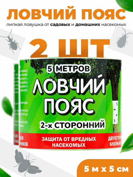 Внимание, уважаемый покупатель! Изменился дизайн упаковки, на данный момент Вам может приехать пояс как в новом, так и в старом дизайне. Ловчий пояс NoGuest! - это экологически безопасное средство для защиты плодовых деревьев от ползающих насекомых-вредителей. Он представляет собой двустороннюю ленту с нанесенным на нее клеевым слоем, который не содержит ядов и устойчив к влажности. Уникальная двухсторонняя рабочая поверхность ловчего пояса обеспечивает максимальную защиту деревьев с ранней весны и до поздней осени. В комплекте идут две ленты длиной по 5 метров каждая. Срок годности составляет 5 лет. Для использования ловчего пояса предварительно зачистите верхний слой коры деревьев щеткой, плотно оберните ствол дерева лентой клейкой стороной к дереву на высоте 60-80 см от земли и снимите защитный бумажный слой. Ловчий пояс NoGuest! подходит для всех типов растений и может использоваться круглогодично.