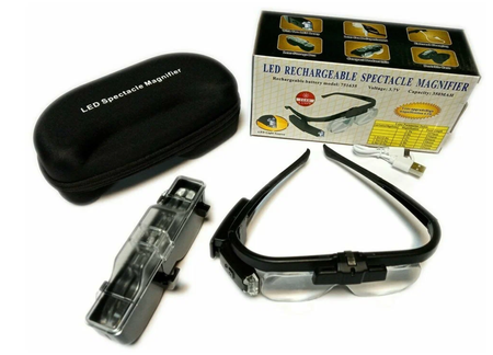 Налобная лупа 11642DC – удобный увеличительный прибор со сменными линзами и шестиступенчатым увеличением. Эти лупа-очки освободят руки и позволит с комфортом изучать мелкий шрифт, паять механизмы, заниматься моделизмом или ремонтом ювелирных изделий и часов. Кроме того, прибор пригодится в медицинской и радиотехнической сферах. Сменные линзы помогут рассмотреть объекты на разной кратности – диапазон увеличения составляет от 1,5x до 4,5x. Три насадки из оптического пластика можно закреплять попарно. Сбоку от линз находится подсветка из двух ярких светодиодов. Освещение работает от встроенного аккумулятора (USB-кабель для зарядки включен в комплект) и позволяет изучать объекты даже в темное время суток. Особенности: Лупа-очки для повседневных дел, хобби и ремонта. Три сменные пары линз Доступно увеличение от 1,5x до 4,5x . Подсветка из двух светодиодов. Комплектация: Налобная лупа. Сменные насадки-линзы – 3 шт. АккумуляторUSB-кабель.