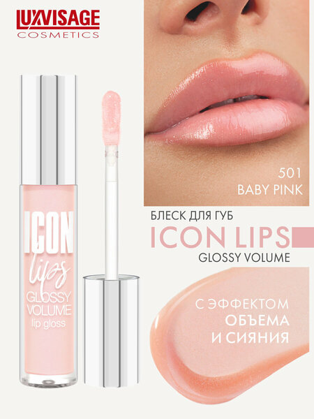 Блеск для губ LUXVISAGE, ICON lips glossy volume, Baby Pink, с эффектом объема, тон 501, 1 уп