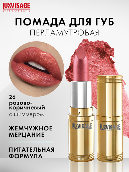 LUXVISAGE представляет помаду для губ с перламутром и глянцевым блеском в оттенке 26 розово-коричневого цвета с шиммером. Это профессиональное средство, созданное в Беларуси, которое обеспечивает питание, увлажнение и коррекцию объема губ. Помада имеет кремовую текстуру и влажный финиш, который придает губам перламутровый блеск. В составе продукта присутствуют активные ингредиенты, такие как витамины E и C, которые обеспечивают питание и увлажнение кожи губ. Упаковка помады выполнена в виде стика, что обеспечивает удобство использования и легкость нанесения. Вес продукта составляет 4 грамма, что делает его легким и компактным для переноски. LUXVISAGE помада для губ не содержит парабенов и тестируется на животных, что делает ее гипоаллергенной и безопасной для использования. Способ применения помады прост: нанесите ее самостоятельно или с контурным карандашом. Для наилучшего результата рекомендуется использовать кисточку для губ. Выбирая LUXVISAGE помаду для губ, вы получаете профессиональное средство для ухода за губами, которое обеспечивает питание, увлажнение, коррекцию объема и перламутровый блеск.