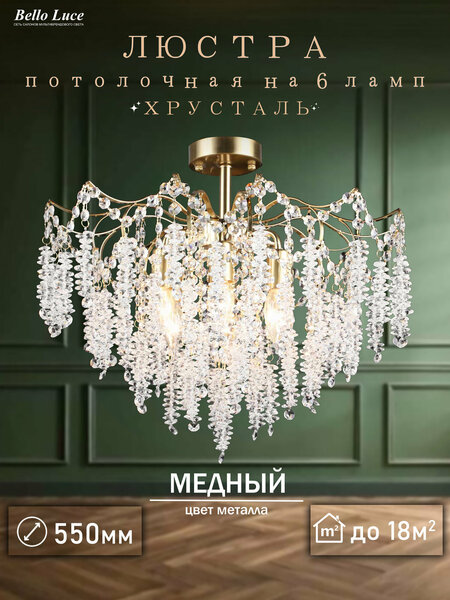 Площадь освещения до 18 м2 Представляем вашему вниманию изысканную хрустальную люстру, выполненную в элегантном дизайне. Этот уникальный светильник позволяет обеспечивать яркое и комфортное освещение в любом помещении. Люстра станет не только источником света, но и стильным акцентом в вашем интерьере, добавляя нотки престижа и утонченности. Погрузитесь в атмосферу роскоши с хрустальной люстрой, способной преобразить любой интерьер. Люстра станет изюминкой вашего пространства, обладая не только высоким функционалом, но и колоссальной эстетической ценностью. Хрустальные подвески изящно свисают, создавая игру света и теней, что придаст вашему помещению особую магию. Данная люстра характеризуется современным и трендовым дизайном, который органично впишется как в классические, так и в современные интерьеры. Цвет металлических элементов добавляет дополнительный шик и элегантность, подчеркивая престижный статус этого светильника. Использование хрусталя в оформлении делает изделие не только стильным, но и невероятно притягательным, создавая атмосферу настоящего праздника каждый день. Это украшение интерьера станет идеальным акцентом как в гостиной, так и в столовой, оформив пространство с уникальным стилем. Люстра обеспечивает яркое и равномерное освещение, что делает её не только красивым, но и практичным выбором для вашего дома. Если вы ищете не просто светильник, а настоящее произведение искусства, эта люстра станет великолепным выбором. Она добавит нотку изысканности и сделает ваш интерьер завершенным. Обновите своё пространство, выбрав эту стильную и красивую люстру, которая будет радовать глаз и создавать комфортную атмосферу на длительное время.