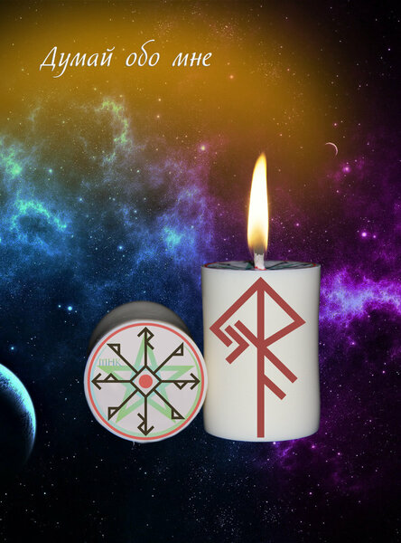 Магическая свеча с рунами программная Ритуал Став Думай обо мне для обрядов и медитации волшебная эзотерика.