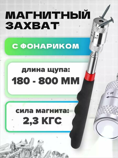 Магнит телескопический - это инновационный и универсальный магнитный инструмент, который станет незаменимым помощником в быту, строительстве и ремонте. Благодаря его уникальной конструкции, вы сможете легко и быстро зафиксировать, извлечь или переместить металлические предметы без особых усилий. Наш магнит телескопический состоит из двух частей - основного магнита и выдвижной ручки. Эта ручка позволяет вам регулировать расстояние между магнитом и предметом, который вы хотите поднять, что обеспечивает более точную и легкую работу. Магнит телескопический обладает высокой силой сцепления, которая позволяет удерживать даже тяжелые металлические предметы. Благодаря своим компактным размерам и легкому весу, этот инструмент удобно